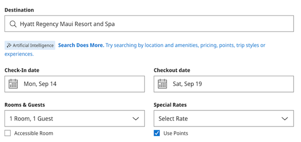 Go to the Hyatt website and search for your destination. (Always check availability before transferring points.)